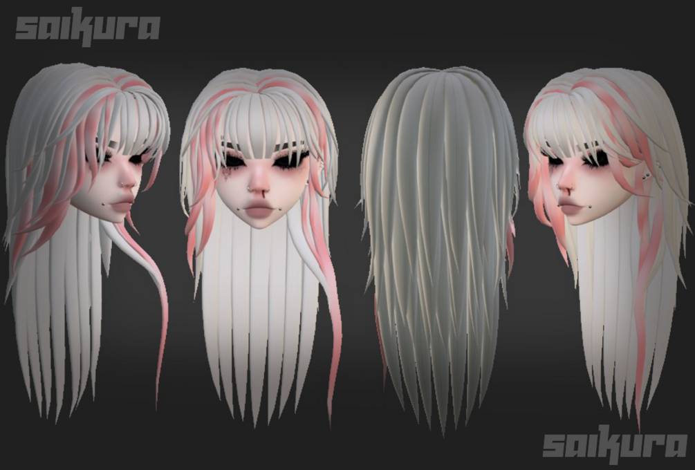 1 FBX file with 3 meshes (bangs, short hair, extensions) everything together is about 28k tris