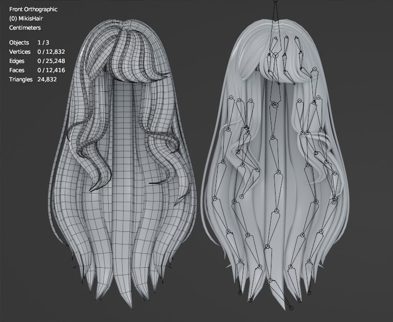 ▸ Miki's Hair (Long hair) - 24k tris, 50 bones