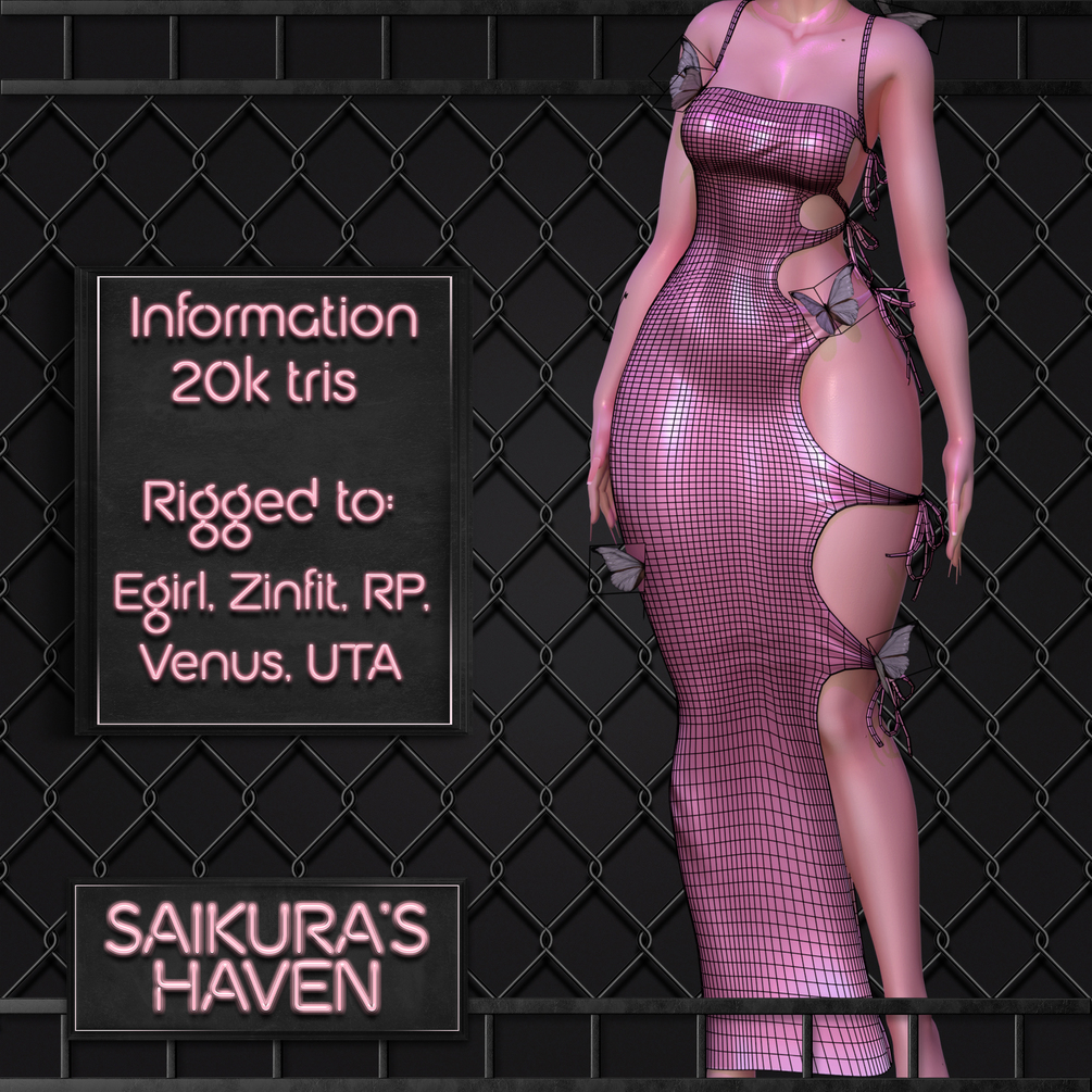 ▸ Butterfly Long Bodycon Dress for VRChat - custom made by me, from scratch.