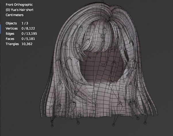 ▸ Yua's Hair v2 - 10k tris, 41 bones