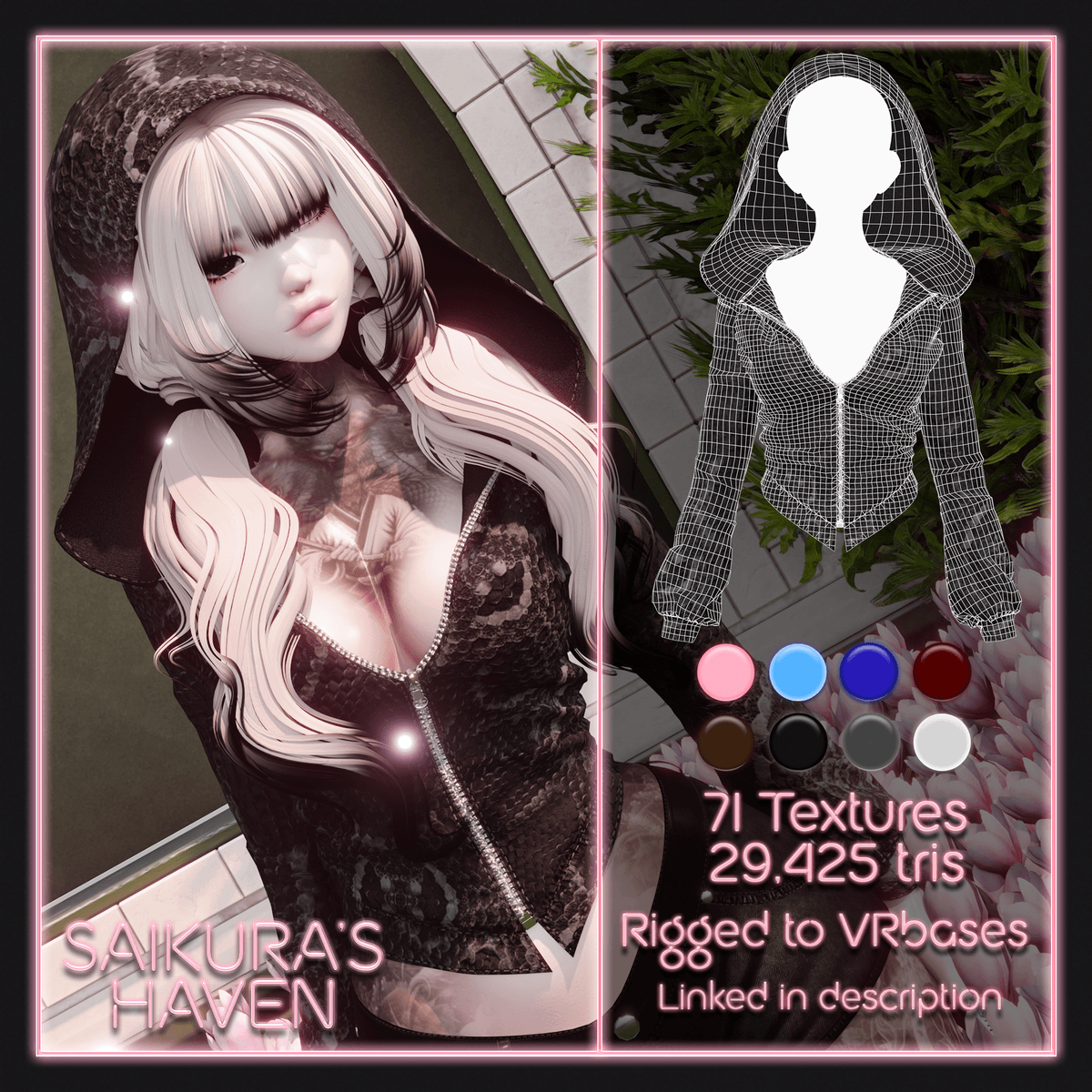 ▸ Hoodie ▸ 29k tris, rigged to Egirl, Fantasy, Venus, Kiyo, Hazie v2 bases!