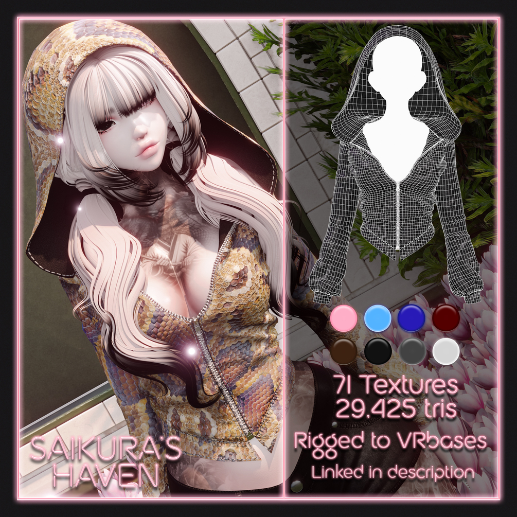 ▸ Hoodie ▸ 29k tris, rigged to Egirl, Fantasy, Venus, Kiyo, Hazie v2 bases!